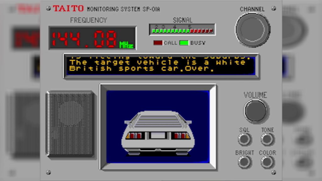 20 pence in the slot would provide you with your first credit – which if you were well seasoned, could take you to the end of the game, given the games gracious difficulty curve. Each mission is radioed to you by Nancy at Chase Head Quarters who proceeds to fill you in on the suspect you’re chasing and his car of choice, starting with the Idaho Slasher in a white Lotus Esprit – which although not implicitly named is evident from it’s look and the British description. You get a map depicting a somewhat vague “Street lined with large buildings”, Brody then fills you in with some words of encouragement, and you’re off, gear lever in one hand, wheel in the other.